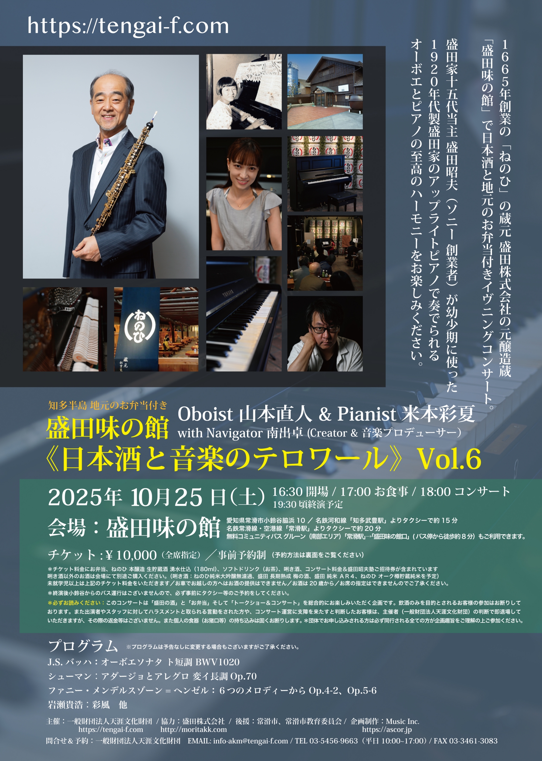 *必ずお読みください:このコンサートは「盛田の酒」と「お弁当」そして「トークショー&コンサート」を総合的にお楽しみいただく企画です。飲酒のみを目的とされるお客様の参加はお断りしております。